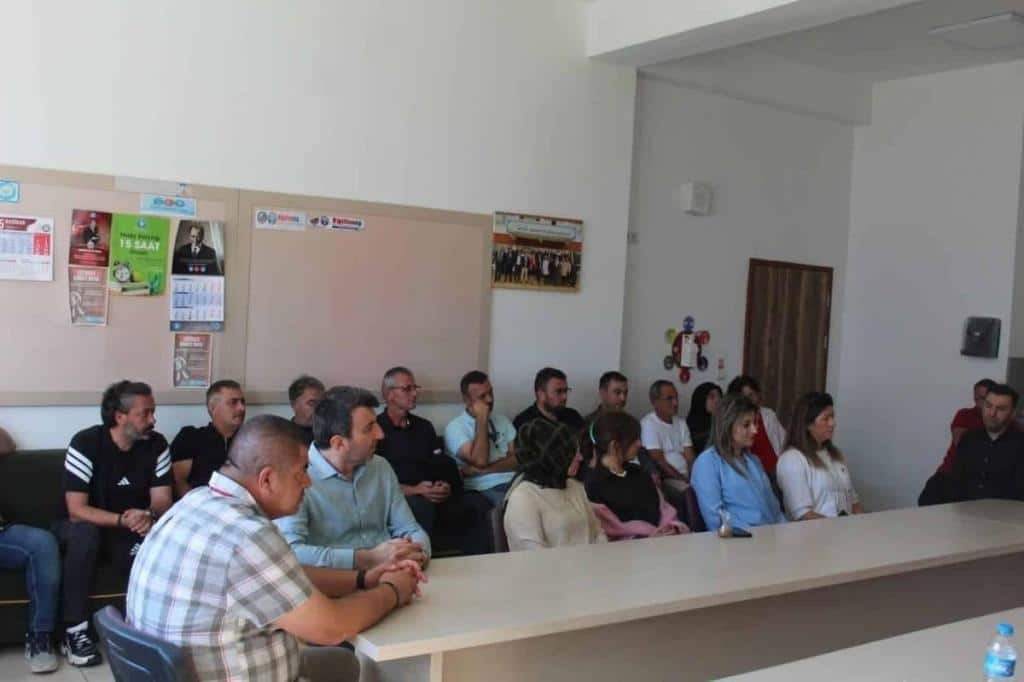 İlçe Milli Eğitim Müdürümüz Suat Evin, Şube Müdürümüz Bayram Selek ile birlikte okulumuzu ziyaret etti. Ziyarette öğretmenler ile bir araya gelen Müdürümüz, eğitim-öğretim faaliyetleri üzerine detaylı bir değerlendirme gerçekleştirdi.
