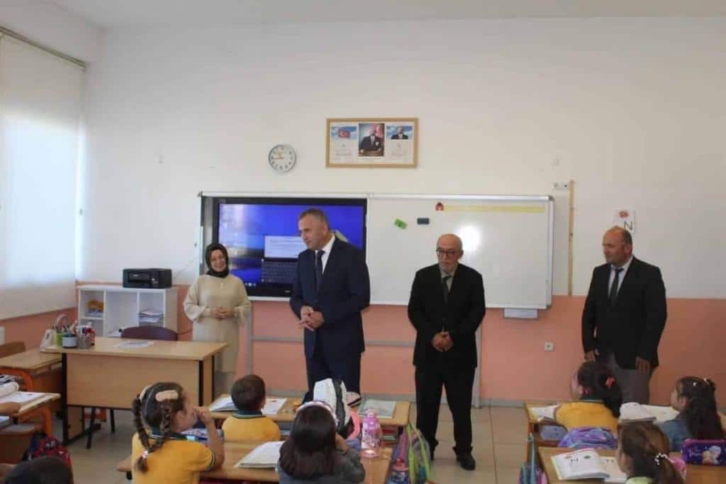 Öğretmenlerin dilek ve görüşlerini dinleyen İlçe Milli Eğitim Müdürümüz, eğitim sürecinin daha etkili ve verimli yürütülmesi için yapılabilecek çalışmalar üzerinde durdu. Ardından 1.sınıfları ziyaret edip öğrencilerle buluşan Müdürümüz, öğrencilerle samimi bir sohbet gerçekleştirdi. Öğrencilerin derslerine yönelik motivasyonlarını artıracak tavsiyelerde bulundu, onların hedeflerini ve hayallerini dinleyerek başarıya giden yolda azimle çalışmalarını öğütledi.